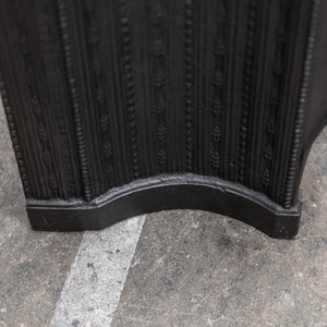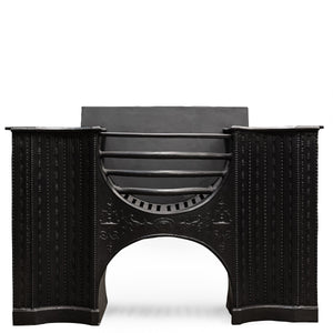 Of good size and excellent quality, the handsome grate is in the manner of Robert Adam. The sweeping grate is decorated with urns and bellflowers and is flanked by curved panels, each providing simple reed and bead motifs.