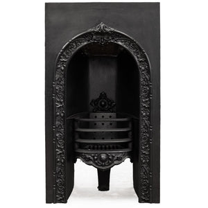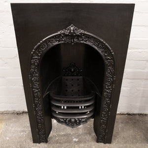 This antique Victorian cast iron grate offers an ornate fireplace insert to add to a chimneypiece renovation.