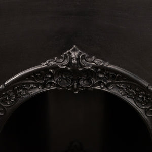 The arched opening has decorative deep profile floral and foliate details, feminine motifs are also seen on the backplate and the base of the integral basket.