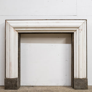 The handsome chimneypiece is formed from timber with bolection moulding that sits upon simple block-ends. The clean linear lines teamed with cushioned curves make the bolection a design that is still highly regarded for interior spaces due to its ability to sit in both period and contemporary settings.