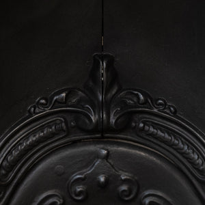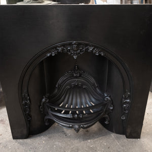 Decorative florals feature to the centre of the insert, above the decorative arched opening and the integral basket. The ornate piece has wonderful deep profile motifs.