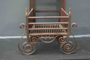 An Antique Fire Basket in Cast Iron with brass detailing.