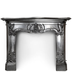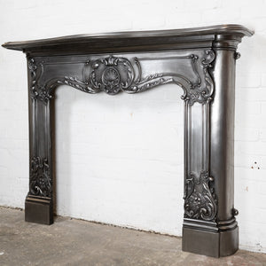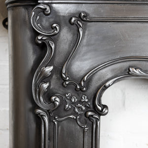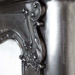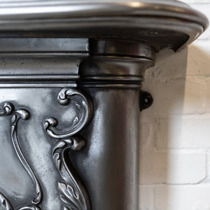 An original 19th Century cast iron fireplace surround that has been hand-polished for a spectacular finish. This rare antique cast iron chimneypiece has ornate detailing throughout.