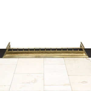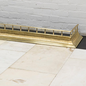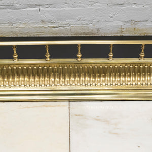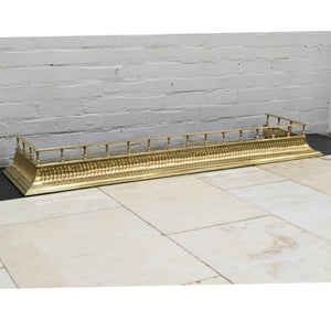 An original, Victorian pierced Brass Fireplace Fender with ornate detailing and decorative vertical bars.