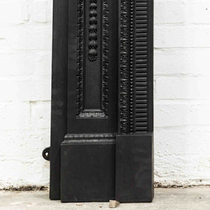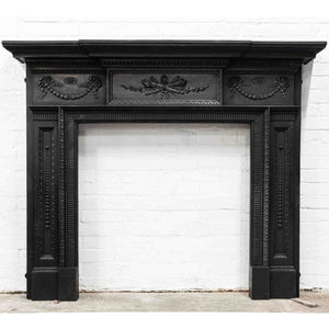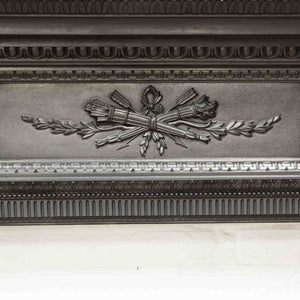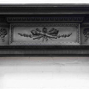 The substantial piece has panels decorated with delicate flowing florals, swags and urns. The piece is surmounted by a large shelf. The surround has been fully restored in-house and is ready for installation.