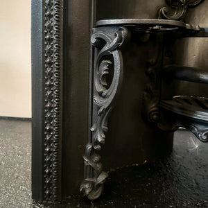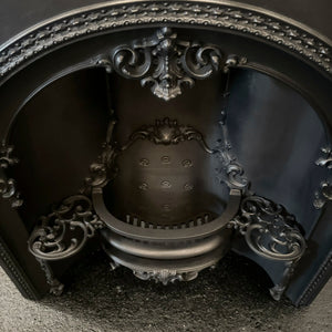 A splendid antique early Victorian arched fireplace insert in cast iron.