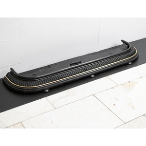 This sweeping arched fender comes in black with golden brass trim.