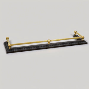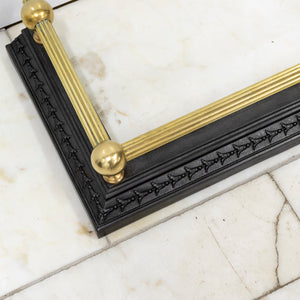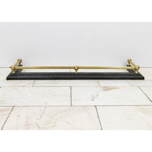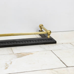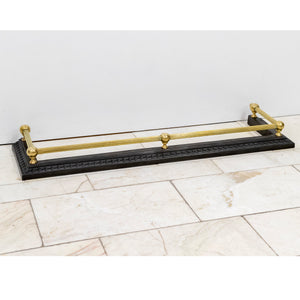 Black iron base with intricate border detailing, paired with polished brass rails and finials.