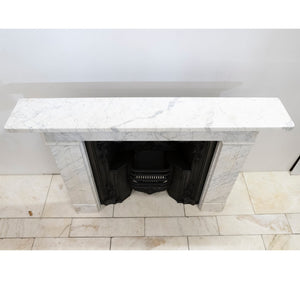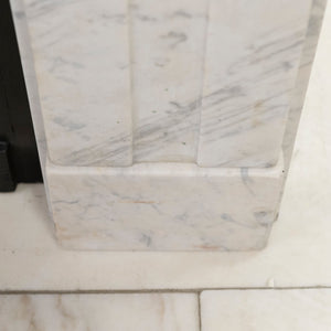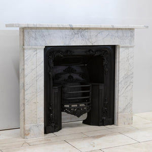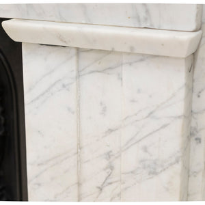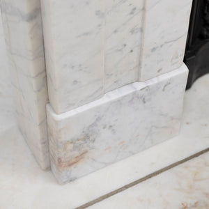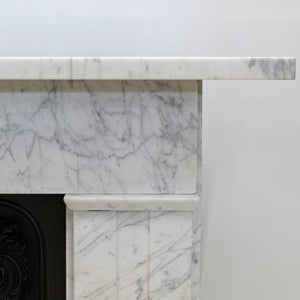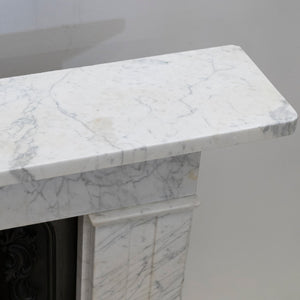 A refined and beautifully proportioned antique Georgian fireplace surround, carved from Italian, Carrara marble with elegant grey veining throughout. Understated and architectural, this is a classic Georgian design that relies on proportion rather than heavy ornamentation.
