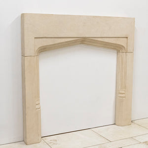 The Gothic Revival chimneypiece features an arched inner moulding with simple chamfered detailing on the jambs, giving it an understated yet architectural presence that reflects the period. The surround is supplied in three solid sections—lintel and two jambs. The piece has been gently restored in-house to retain authentic surface character and natural patina.