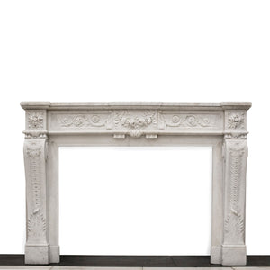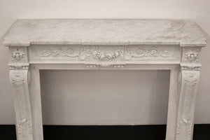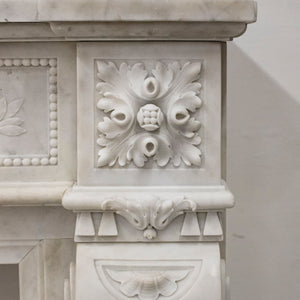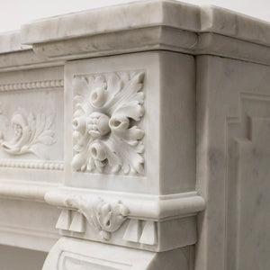 This impressive antique fireplace surround has been expertly carved and crafted from Carrara marble with attractive veins throughout.