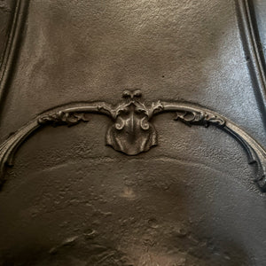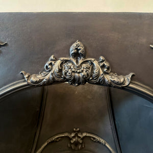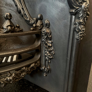 This cast iron insert is adorned with floral motifs to the inner and outer elements of the insert, these charming flamboyant designs are typical of the period and are echoed throughout the piece including the backplate and the 2 bar integral basket.