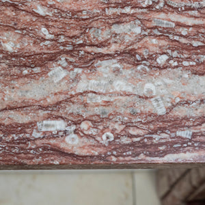 The marble displays exceptional natural character, with deep oxblood and rose tones throughout, interspersed with abundant fossil inclusions typical of Rojo Alicante, giving the piece great visual depth and presence.