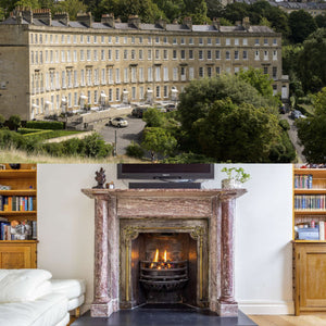 A fine original 19th-century antique fireplace surround, carved from richly figured Rojo Alicante breccia marble. A rare opportunity to acquire an original architectural piece from Cavendish Crescent, Bath. The impressive crescent of 11 townhouses was designed by John Pinch the Elder and is situated within the Bath conservation area and World Heritage Site.
