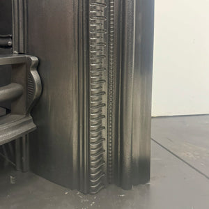 The antique fireplace insert has been fully restored in-house and is ready for installation and use. The piece can also have a gas kit installed if required. Please contact us for more details.