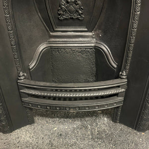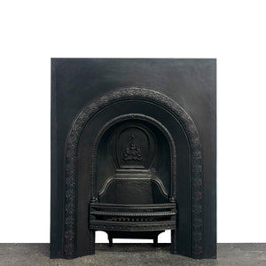 An attractive Victorian arched fireplace insert in cast iron.