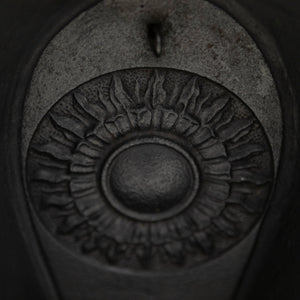 Fully restored in-house and ready for installation, the small 3 bar integral basket sits below an intricate rosette on the damper flap,