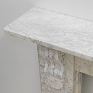 This large antique chimneypiece has carved corbels, and simple marble shelf. The surround does have repairs and has been gently restored at our Hertfordshire warehouse.