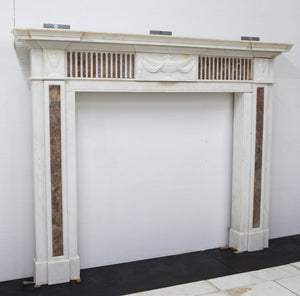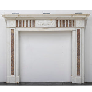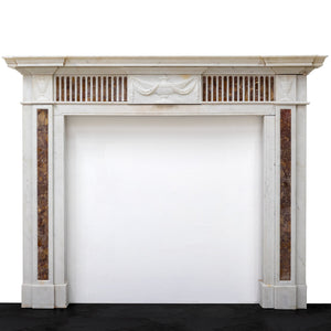 A fine, late Georgian chimneypiece in Statuary marble with Spanish Brocatelle marble fluting and ingrounds.