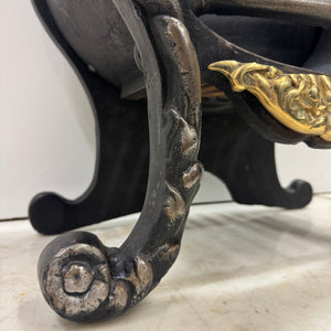 This reclaimed fire basket is finished with pair of decorative brass finials and a matching brass embellishment across the apron, adding warmth and character to the design.