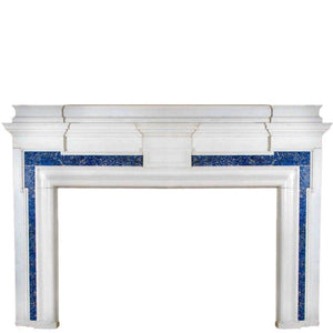 Spectacular antique marble fire surround crafted in Statuary marble, with Lapis Lazuli inlay.