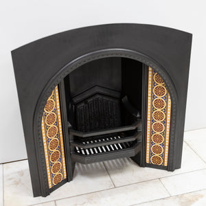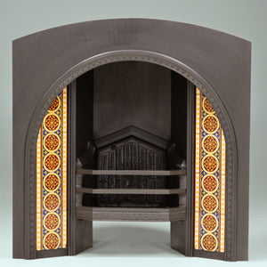 Antique Victorian Arched Cast Iron Fireplace Insert with Minton Tiles.