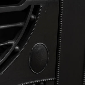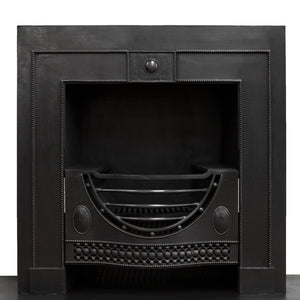 Simple but mighty, this large cast-iron Regency-style register grate delivers an imposing feature for a chimneypiece renovation.
