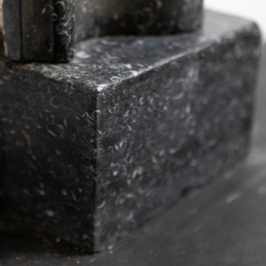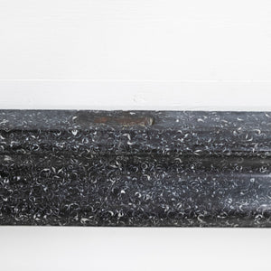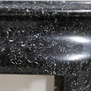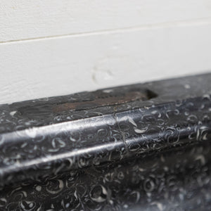 Kilkenny marble is deep black with bright white fossil inclusions exposed throughout.