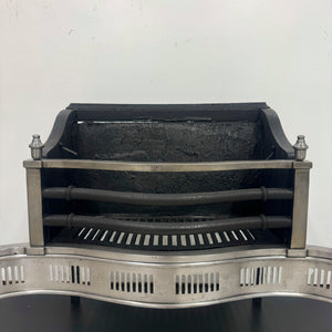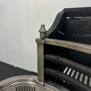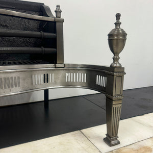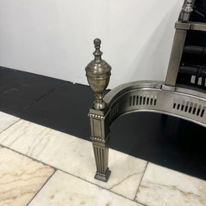 This elegant fire basket, showcasing the refined characteristics of the Adam style, enhances any fireplace with its striking design crafted from cast iron and polished steel. The 3-bar structure, adorned with urn shaped finials and a delicately pierced apron, not only adds visual interest but also elevates the ambiance of any living space.