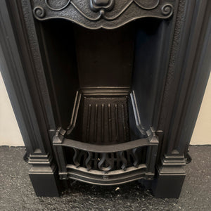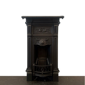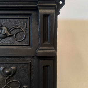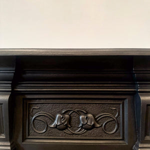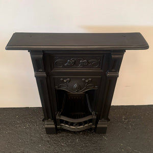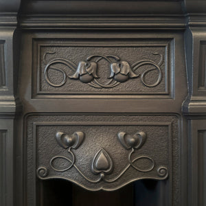 An original Art Nouveau combination fireplace in cast iron. The ornate and attractive piece has symmetry of floral motifs throughout, typical of the Art Nouveau movement.