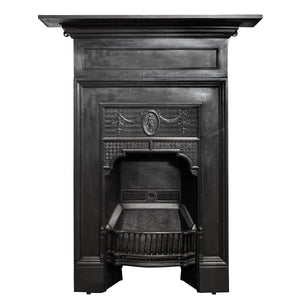 This original and rare fireplace features an intricate Adams-inspired design with classical motifs and swags.