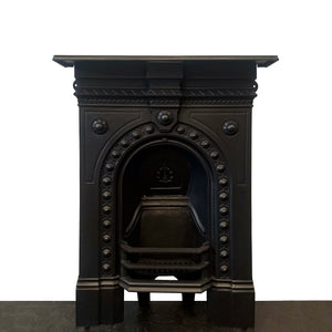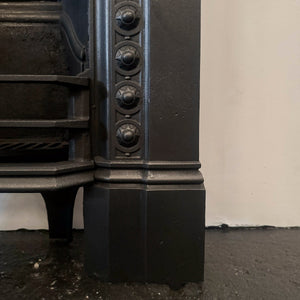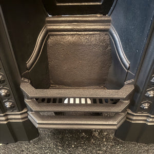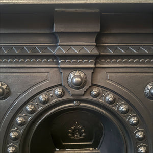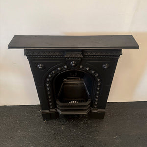 This cast iron fireplace comes complete with a 2 bar integral basket and ornate, decorative arched border of star shaped bosses.