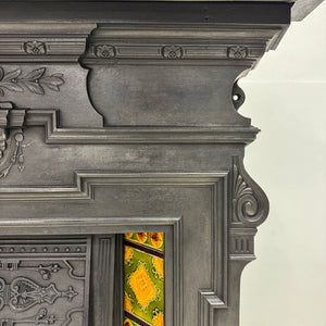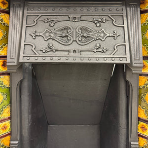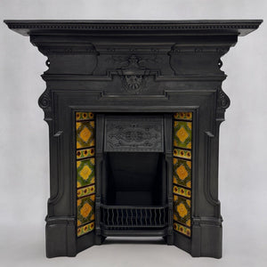 An Antique Victorian Combination Fireplace with vibrant tiles.