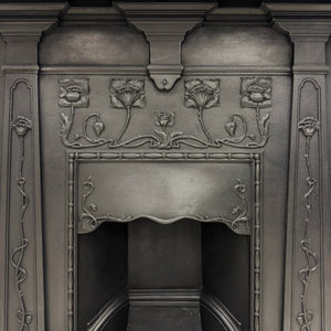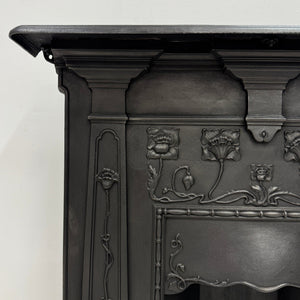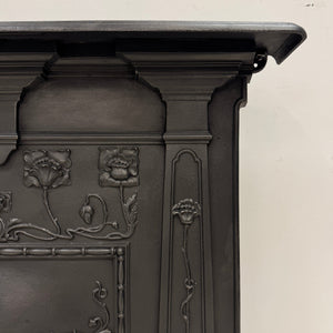 A captivating example of early 20th-century design, this antique cast iron combination fireplace is a true celebration of the Art Nouveau movement. With its fluid, organic lines and nature-inspired detailing, the piece shows elegance and artistic charm.