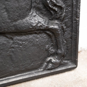With varying levels of relief work, this reclaimed fireback is a superb replica of an exact copy of the one made by the Carron Foundry of Falkirk in Scotland.