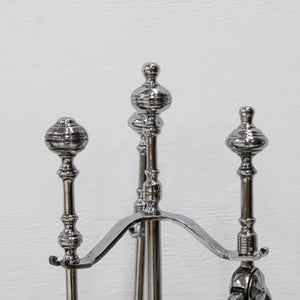Each tool is suspended by its own holder, a handsome and practical addition to the fireside.