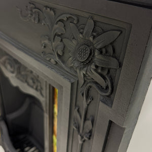 This exceptional piece is rich in character. The delicately cast hood, traditional tiled cheeks and integrated fire basket complete the composition.