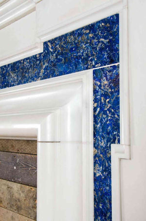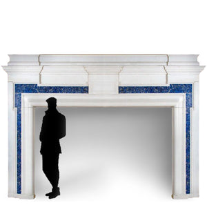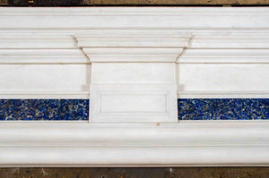 Spectacular antique marble fire surround crafted in Statuary marble, with Lapis Lazuli inlay.