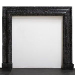 The handsome 18th-century fireplace surround is comprised of a simple bolection design that is complemented by the dramatic contrast that the Kilkenny marble delivers.