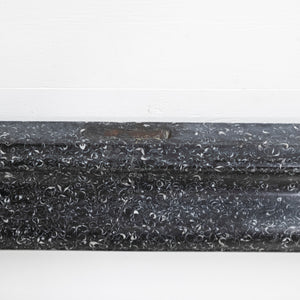 Kilkenny marble is deep black with bright white fossil inclusions exposed throughout.