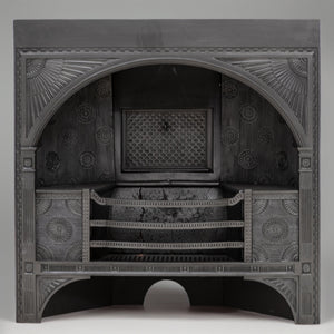 A genuine Thomas Jeckyll design, this cast iron fireplace insert is a fine example of late 19th-century craftsmanship from one of the leading figures of the Aesthetic Movement and produced by Barnard & Bishop, prominent 19th century manufacturer of architectural ironwork.