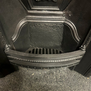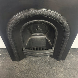 An attractive Victorian arched fireplace insert in cast iron.