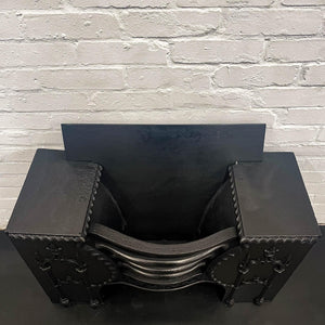 This is an antique Victorian cast iron hob grate in the Gothic Revival style from the mid 19th century.