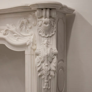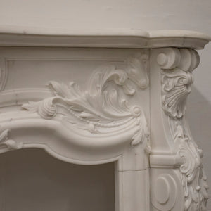We have two highly carved Rococo style chimneypieces which have been crafted from Statuary marble in the Louis Pompadour style.
