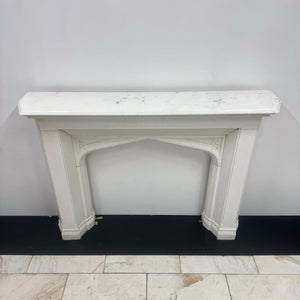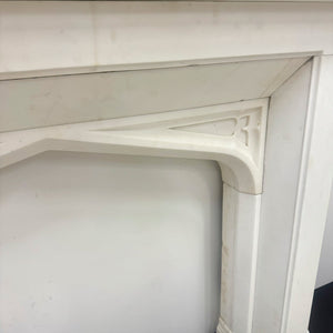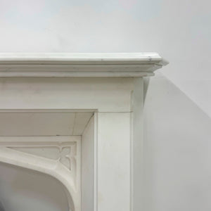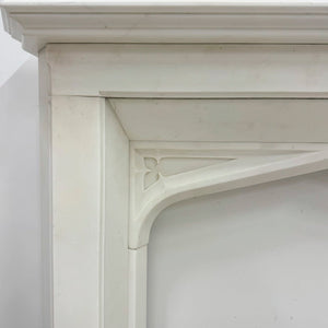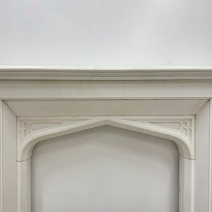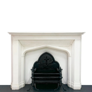This gothic revival fireplace surround is a stunning centrepiece that captures the elegance of historical architecture while incorporating distinctive design features. Its peaked arched opening and chevron spandrels not only evoke a sense of grandeur but also create an eye-catching focal point that elevates the aesthetic of any room.