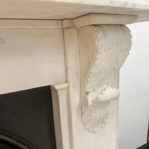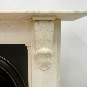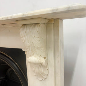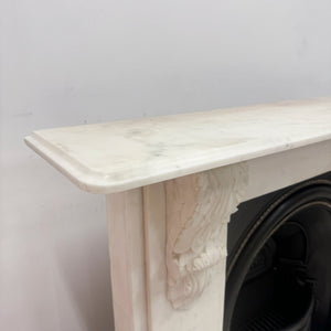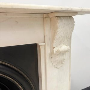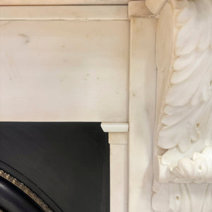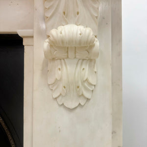 An original Victorian, carved corbel fireplace crafted from fine Statuary marble.