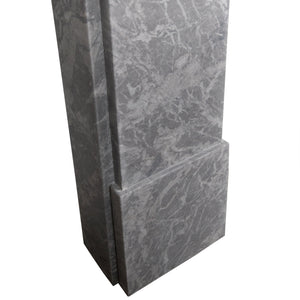 A grand surround made from grey marble reclaimed from the former New Scotland Yard on Broadway; A commercial modernist 20 floor tower constructed in 1967 from concrete, granite and steel.