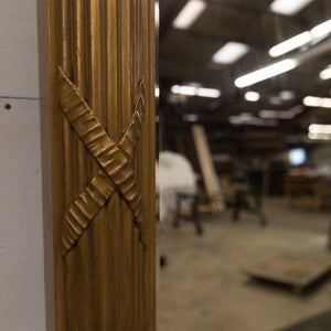 The attractive Victorian style frame is constructed from Antique Pine that was acquired from a prestigious central London theatre. The frame surrounds an original antique piece of mirrored glass that comes complete with it's unique aged patina.