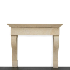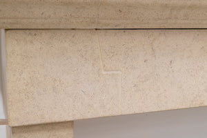 This exquisite French 18th century style fireplace of simple form exemplifies the elegance of the period, showcasing a beautifully carved Avorio limestone structure. The understated frieze adds an element of sophistication, while the two console jambs provide a stylish support.