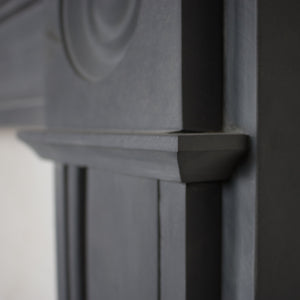 A Georgian style fireplace surround crafted from slate and left in its natural finish.